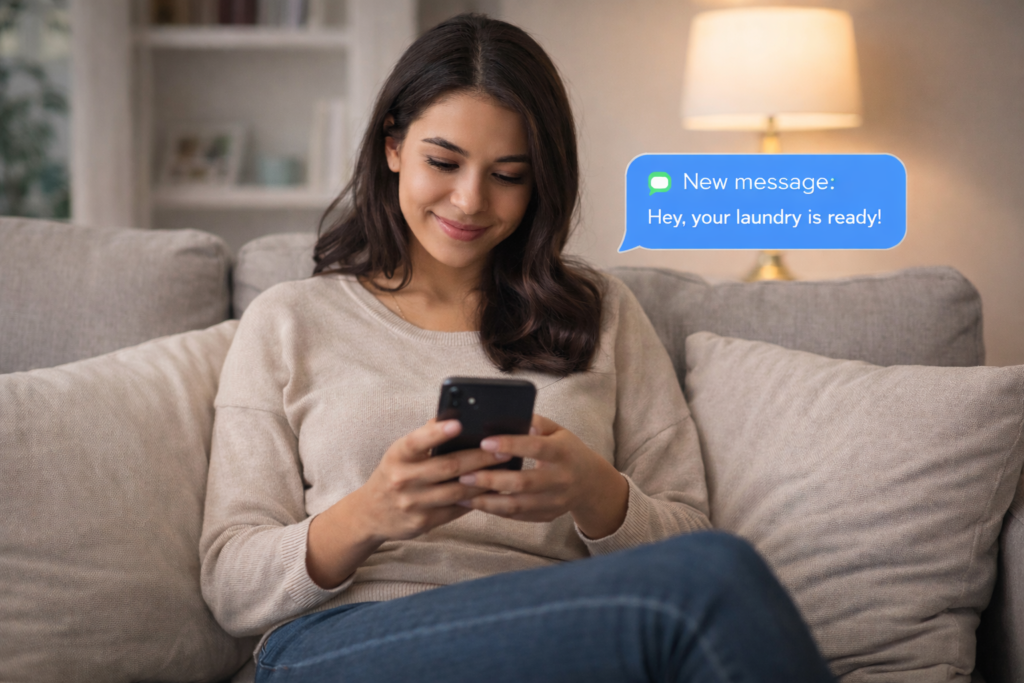 We’ll send you a message to let you know you can collect your fresh, clean laundry.