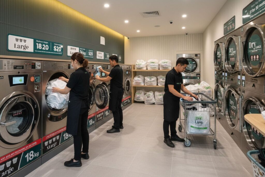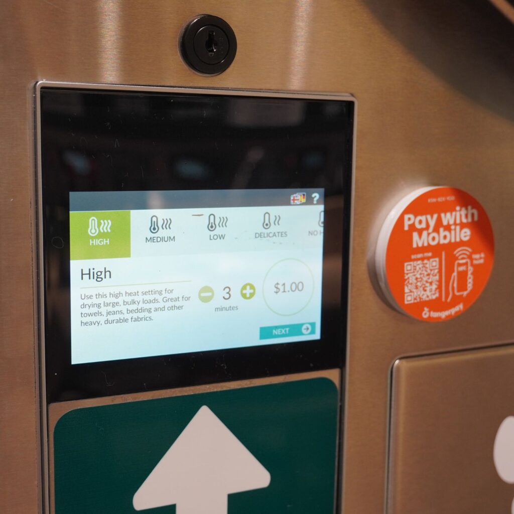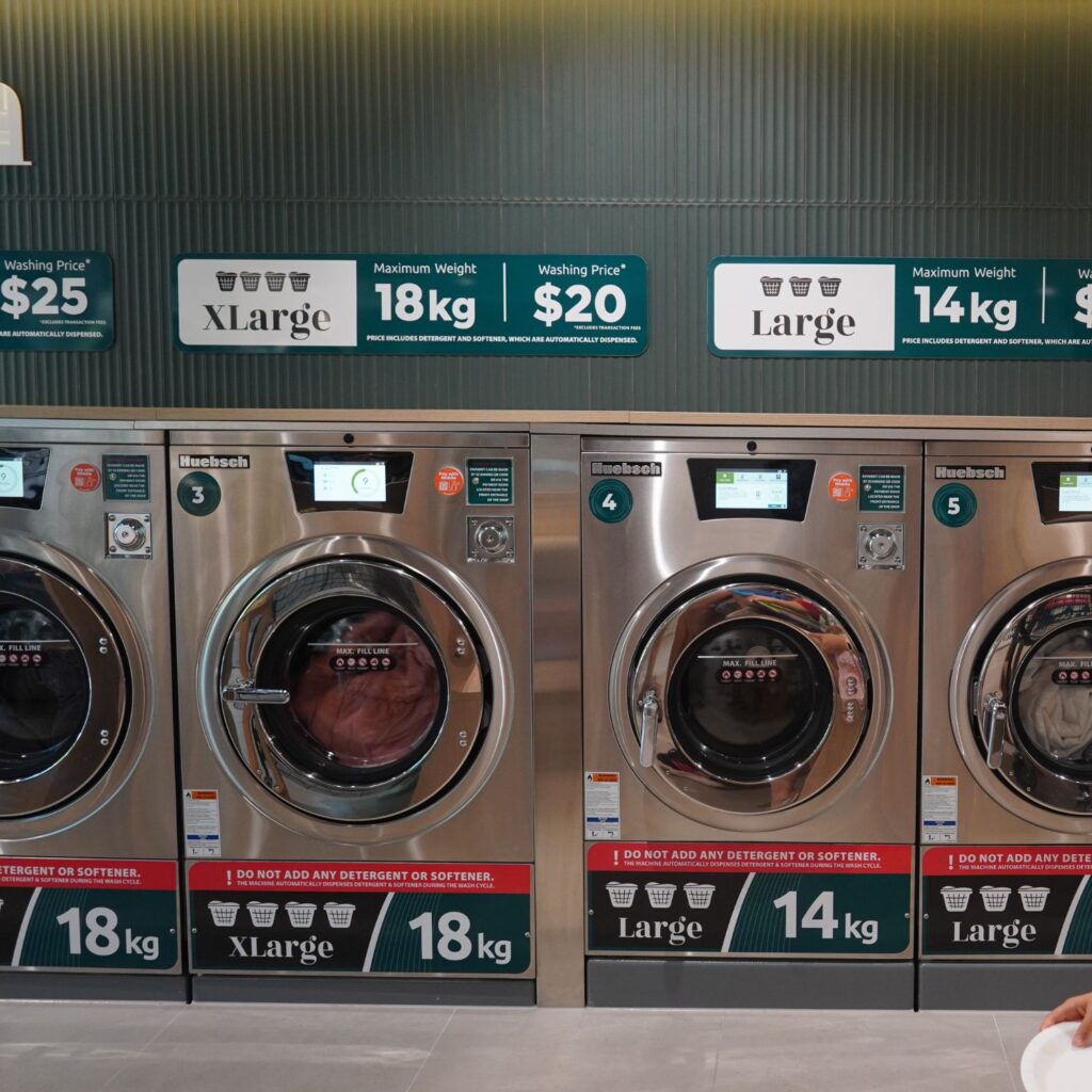 Use our modern, high-efficiency washers and dryers at your convenience. Machines range from 9kg regular capacity to 27kg extra-large capacity for bedding and bulky items.